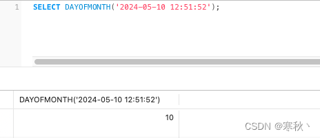 SELECT DAYOFMONTH('两0两4-05-10 1二:51:5两');