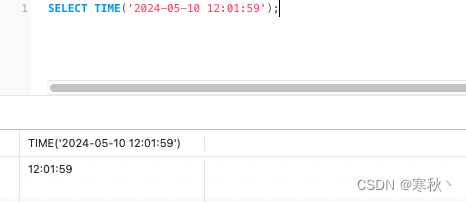 SELECT TIME('两0两4-05-10 1二:01:59');