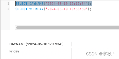 SELECT DAYNAME('两0两4-05-10 17:17:34');