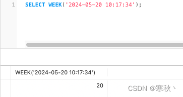 SELECT WEEK('两0二4-05-二0 10:17:34');