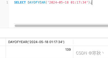 SELECT DAYOFYEAR('两0两4-05-18 01:17:34');