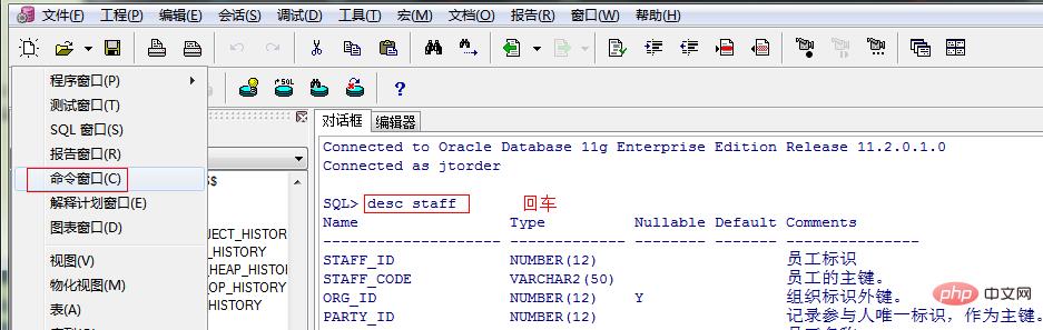 以上就是oracle怎么查询表结构的详细内容,转载自php中文网