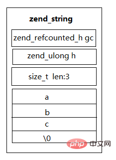 譬喻$a="abc",则对于应的zend_string内存组织如右图: