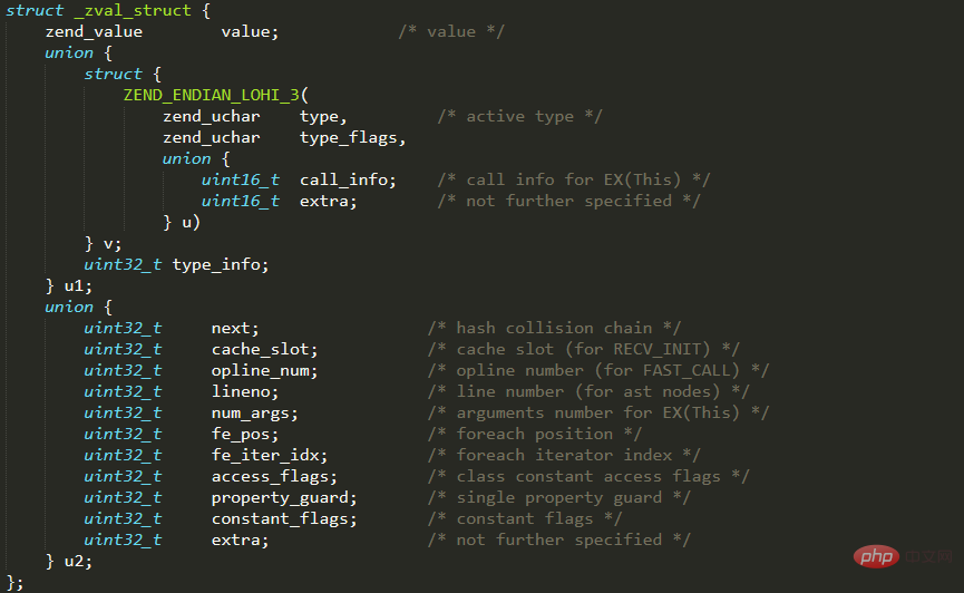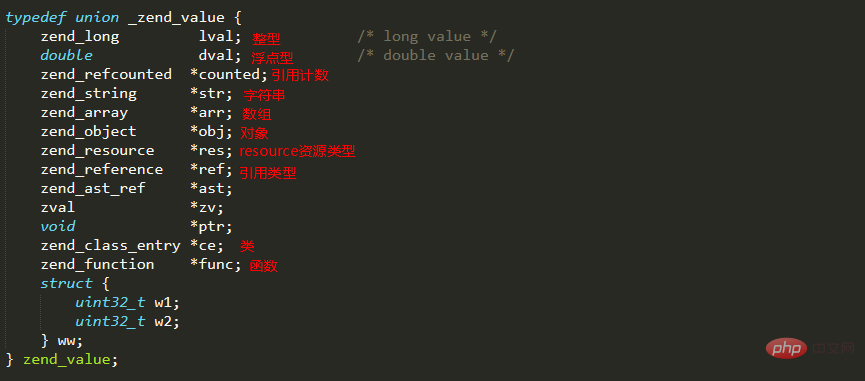 zend_value是一个分离体,其代码如高: