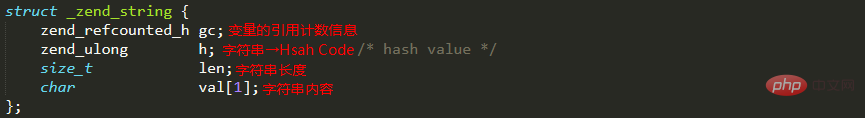PHP为字符串独自界说了一个布局:zend_string。正在zend_value外经由过程str指向详细布局。