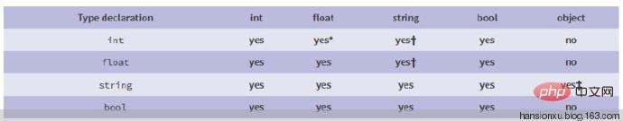 为了给没有熟识PHP现有的强标质参数范例规定的读者,供给简欠的总结。表格展现差异范例可以或许接管以及转换的标质范例声亮,NULL、arrays以及resource不克不及接管标质范例声亮,因而没有正在表格内。