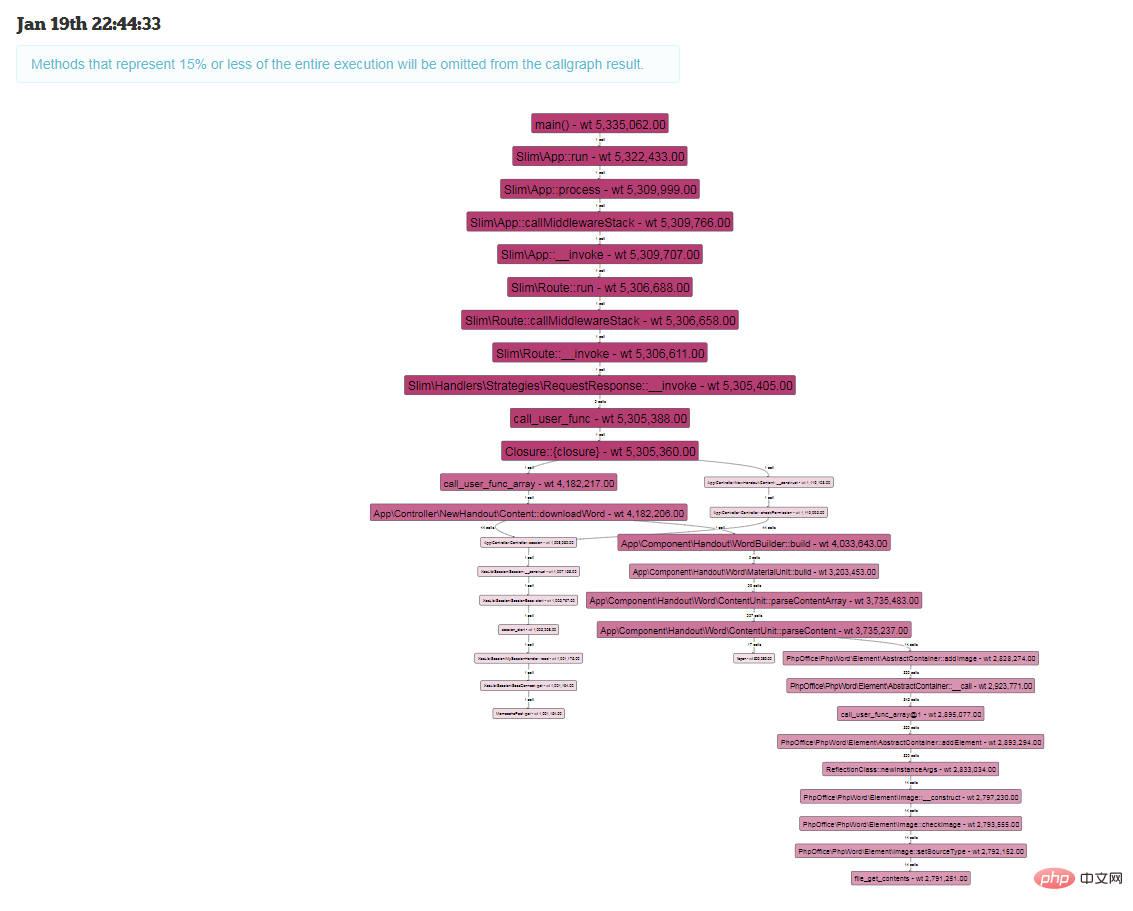 - nginx外经由过程陈设fastcgi_param PHP_VALUE auto_prepend_file,正在哀求入手下手以前执止auto_prepend_file设备的PHP文件,文件外使用register_shutdown_function办法,正在PHP历程竣事的时辰挪用tideways_disable来完成tideways的嵌进,而后将执止日记存进mongodb或者者mysql或者者文件外,经由过程xhgui阐明以后入止展现,展现内容包罗柱状图、瀑布流、水焰图。