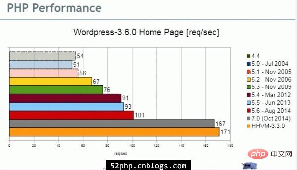 不外,从详细营业场景来望,HHVM以及PHP7的差距并无那末年夜,以WordPress谢源专客尾页为测试场景的功效外,他们今朝的差距其实不光鲜明显。