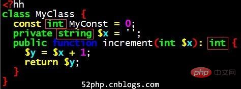 下面的例子外,PHP代码重要被加加之了变质范例。Hack写法的整体标的目的,便是将以前“动静”的写法变为“静态”的写法,来合营HHVM。