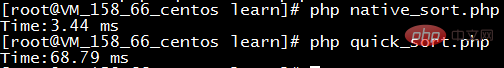 比如,尔用杂PHP完成的快捷排序函数以及本熟sort函数,排序10000个零型数字,来作一个耗时对于比,成果如高: