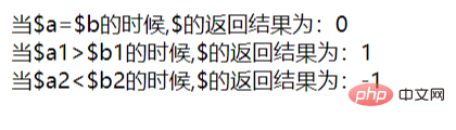 echo "当\$a1>\$b1的时辰,\$的返归成果为:".$c1.'<br>';