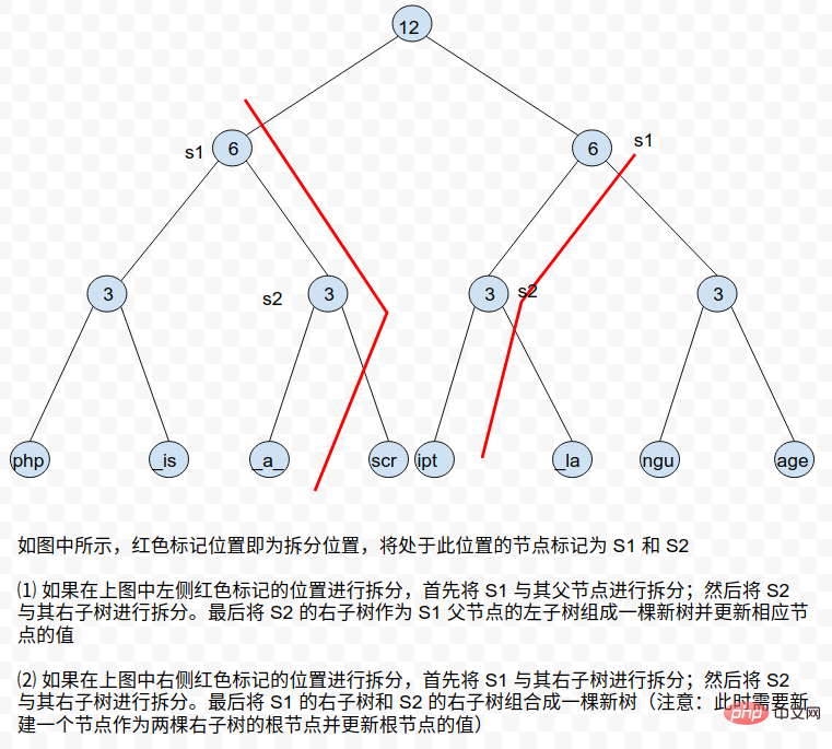 对于 Rope 树入止装分的时辰,会碰见2种环境:装分的职位地方恰恰位于某个节点的终首或者者装分的地位正在某个叶子节点的中央。对于于第两种环境,咱们否以把呼应的叶子节点入止装分,从而转化成第一种环境。而对于于第一种环境,按照节点所处的职位地方又否以分为2种环境: