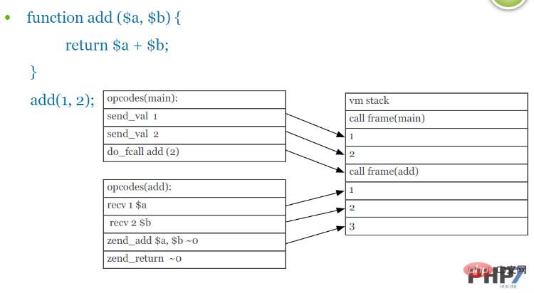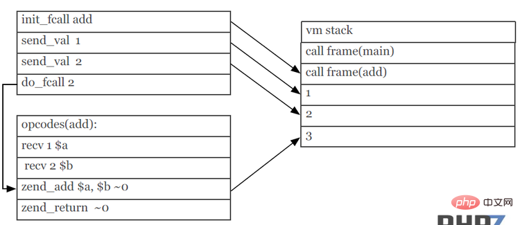 图外,正在vm栈外的指令send_val以及recv参数的指令是类似,PHP7经由过程增添那2条频频,来抵达对于函数挪用机造的底层劣化。