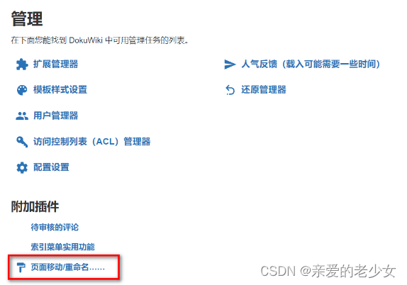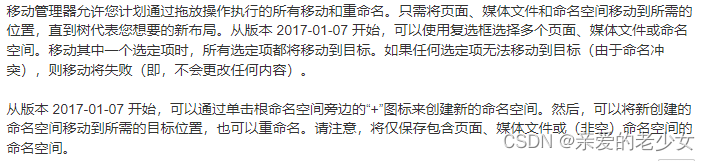 下载及详细介绍用法地址:plugin:move [DokuWiki]