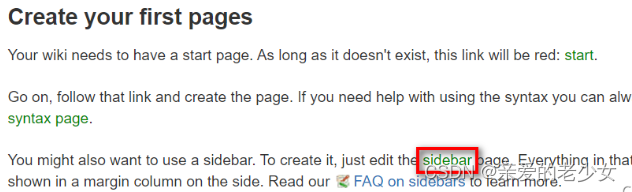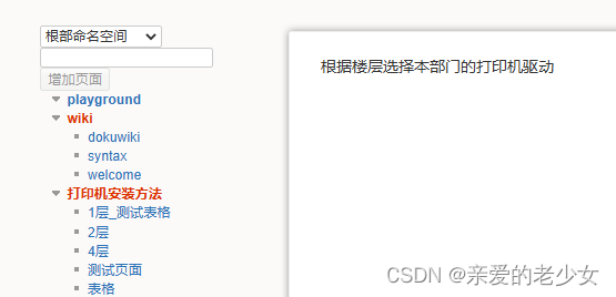dokuwiki学习(一)——增加页面命名空间_狂热森林的博客-CSDN博客_dokuwiki 命名空间dokuwiki学习(二)——新增页面(文章)_狂热森林的博客-CSDN博客_如何在dokuwiki中添加一个页面在其中词条