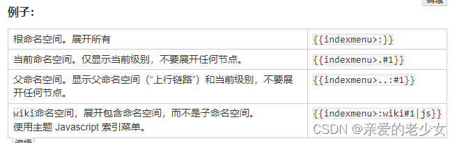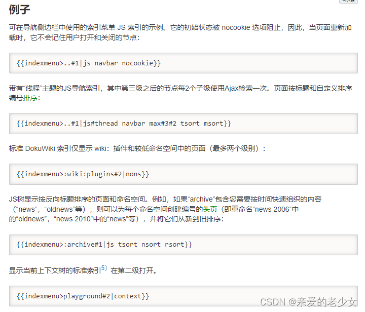 下载及详细介绍用法地址: https://www.dokuwiki.org/plugin:indexmenu