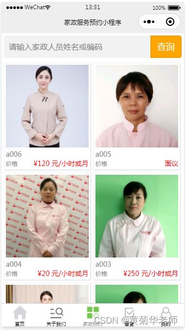 家政人员查询:可以输入家政人员姓名或者编码查询