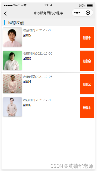 家政人员管理:查看现有公司家政人员列表,支持修改和删除