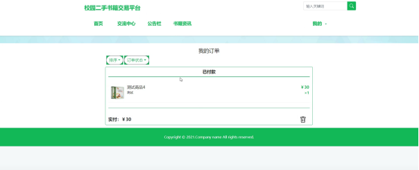通过对校园二手书籍交易平台的研究及设计与开发,基于Springboot框架的校园二手书籍交易平台基本开发完毕,并实现了小型的二手书籍交易平台的基本功能。主要包括用户注册信息管理、用户信息管理、二手书籍管理、用户订单管理、二手资讯管理模块。但是由于时间仓促及知识的缺陷,所以本系统还有很多不足的地方,比如没有与银行系统挂钩的支付模块,没有安全访问的限制,没有销售报表的打印等多方面的问题,这些都有待进一步的完善。