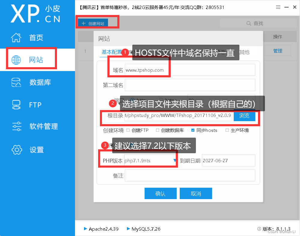 如果你真的出现这个错误,那就怪你自己哦,因为在创建网站那一步骤就写了建议7.2以下版本哦