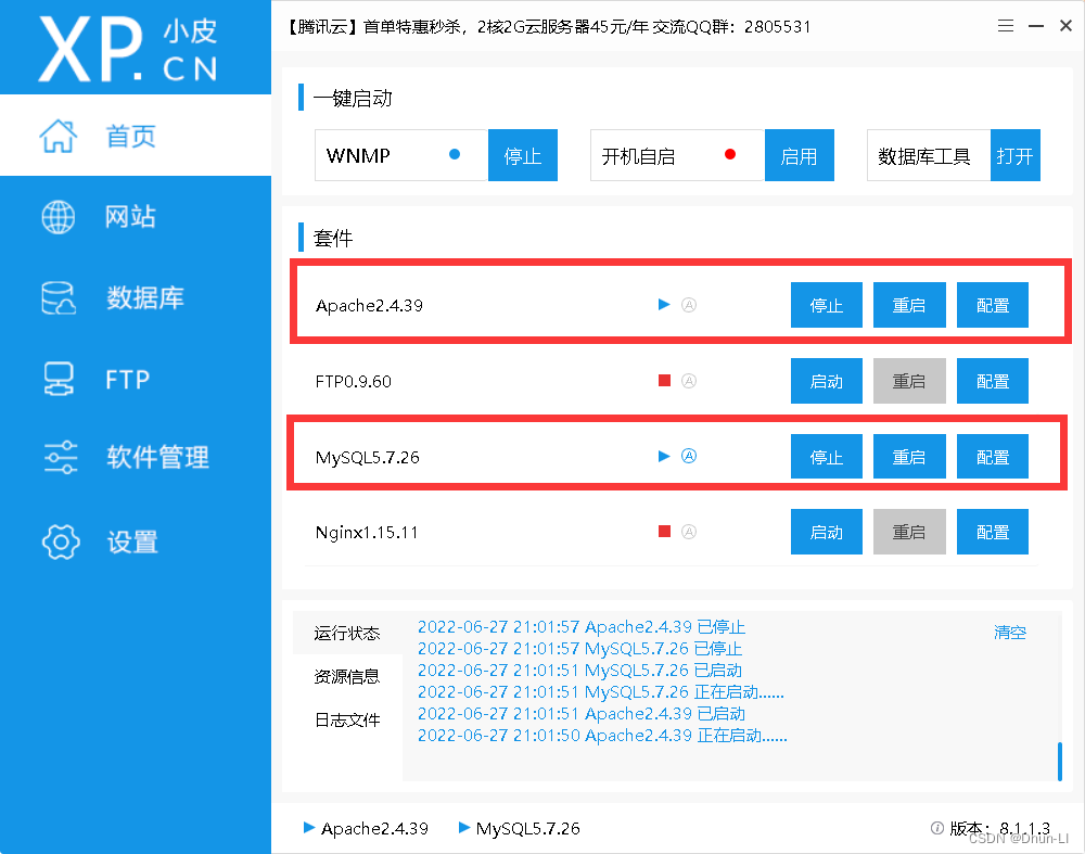 选择合适自己的版本依次开启MySQL、Apache