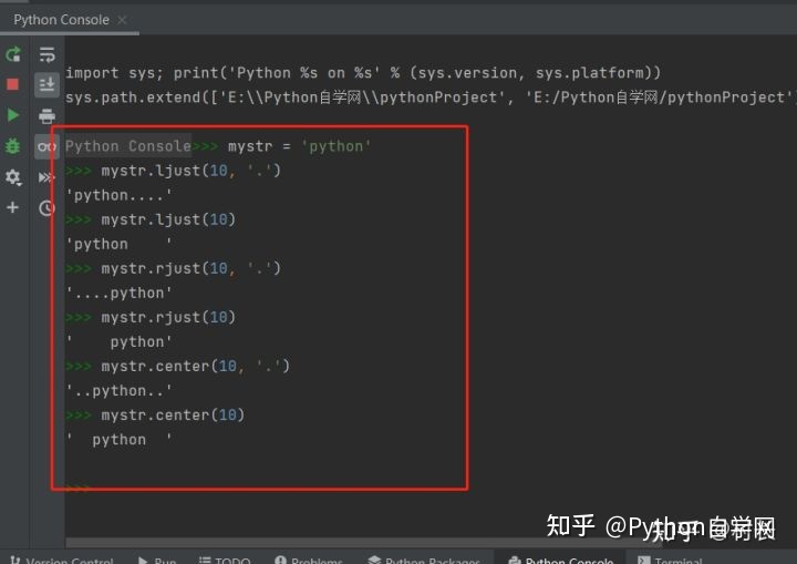 3、Center():返回一个原字符串居中对齐(可能不是绝对对齐),并使用指定字符(默认空格)填充至对应长度的新字符串,语法和ljust()相同。