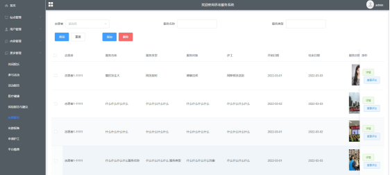 在志愿服务列表页面可以查看志愿活动内容,包括志愿者名称、服务名称、服务类型等,如图5-8所示。