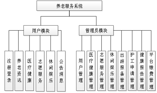 任何一个项目在开发研究前,都需要对研发系统本身的需求做一个认真的分析,市场的调研是不可忽视的,从实际场景中确定使用人员的功能需求,从而明确目标,对整个系统的开发有一个更加准确的定位。在这个章节,需要对系统的性能分析,业务流程分析,和数据等进行分析,养老服务系统的整体界面简单,功能完善。