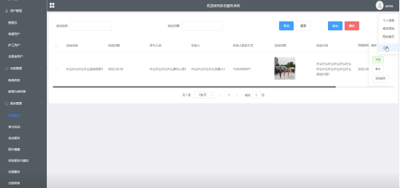 休闲娱乐管理,在休闲娱乐列表可以编辑活动名称、活动日期、参与人员、负责人、联系方式、活动介绍等信息,如图5-4所示。