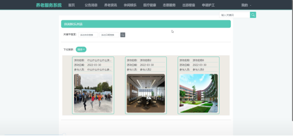 用户可以查在线查看休闲娱乐信息,包括活动名称、活动日期、参与人员内容等,如图5-9所示。