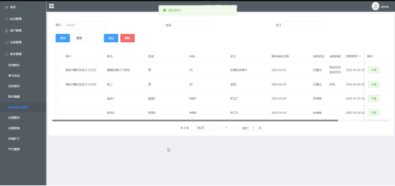 通过对功能的测试,养老服务系统的基本功能都是可行的,不管是系统里面的功能,还是界面的设计都是可值得推广宣传的。
