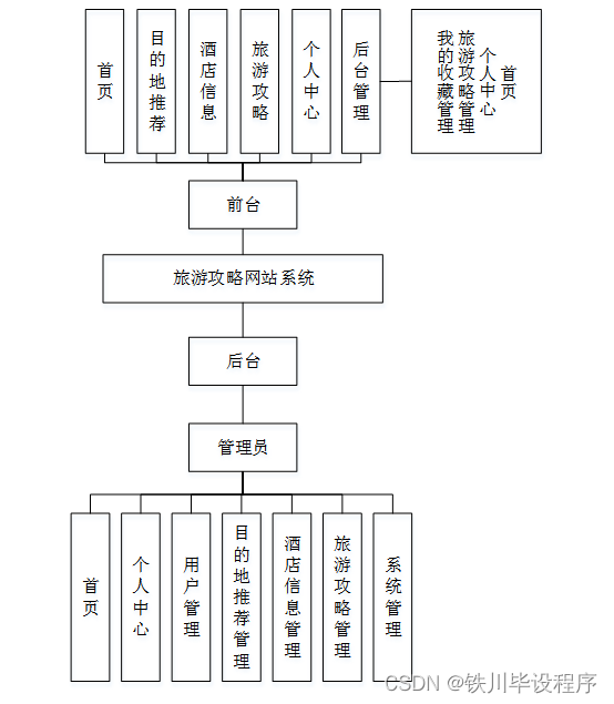 旅游攻略网站系统主要有两类用户。分别是管理员和用户,详细规划如图4-1所示。