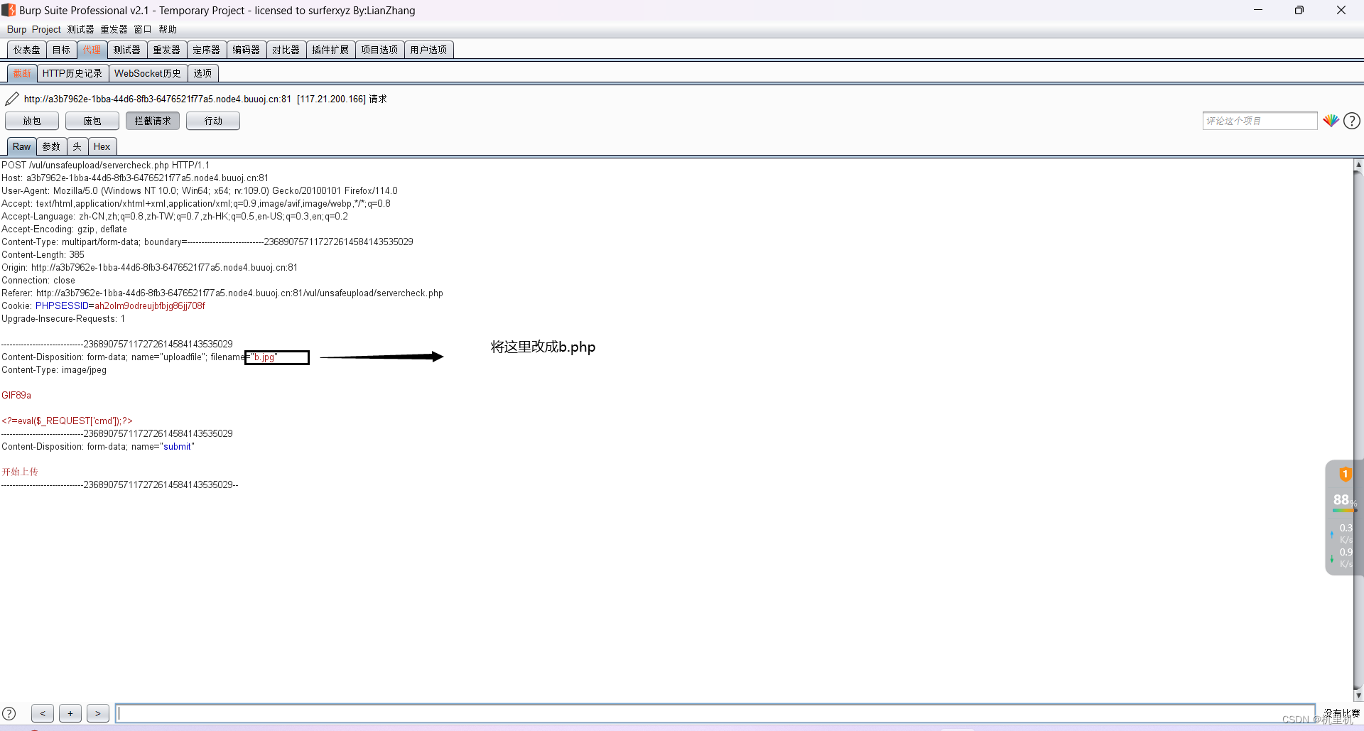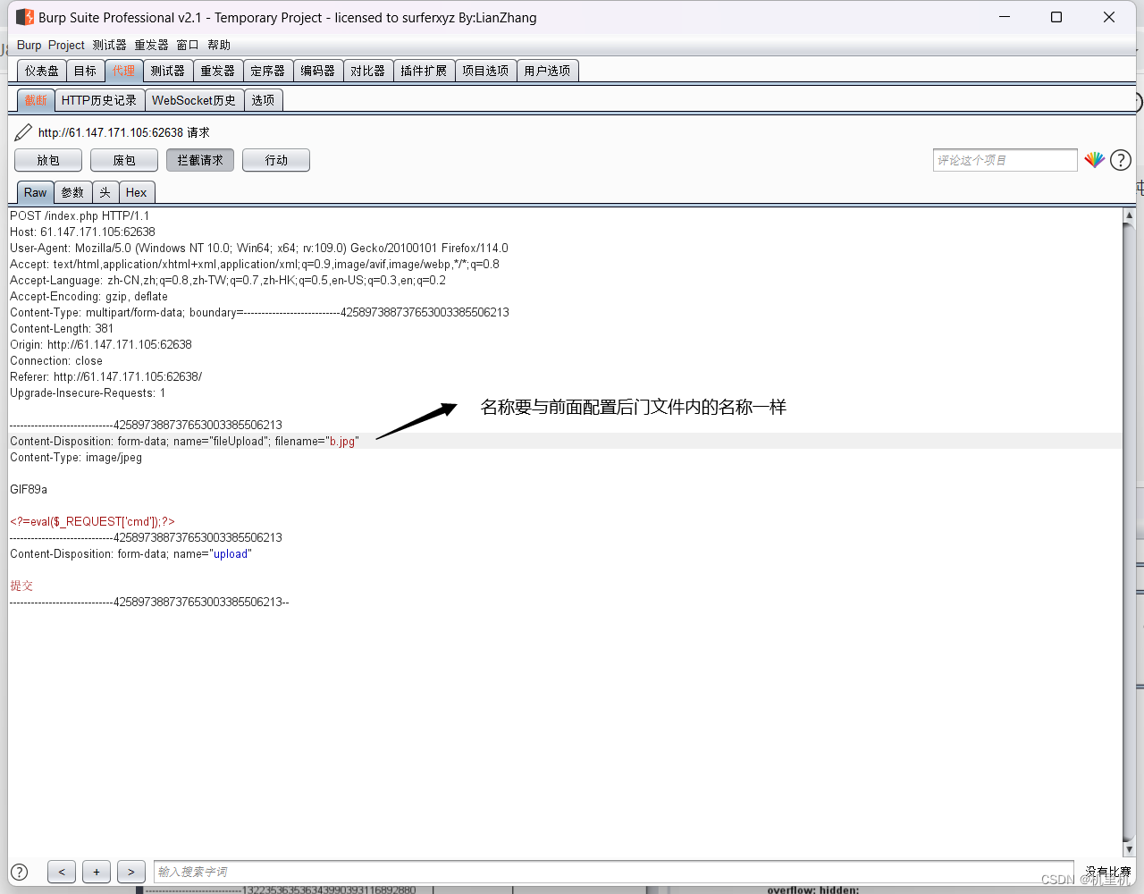一般来说文件上传,正真会被服务器作为筛选点的地方有三个Content-Type: image/jpeg(文件的类型),content-Disposition:(内置处理部分),文件的内容。所以修改的地方也是通过修改这三个地方不断尝试才行。