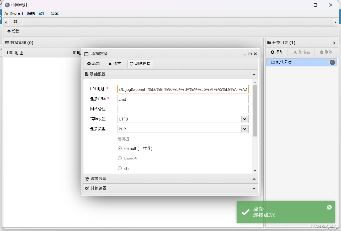 路径如上,然后再通过,蚁剑连接