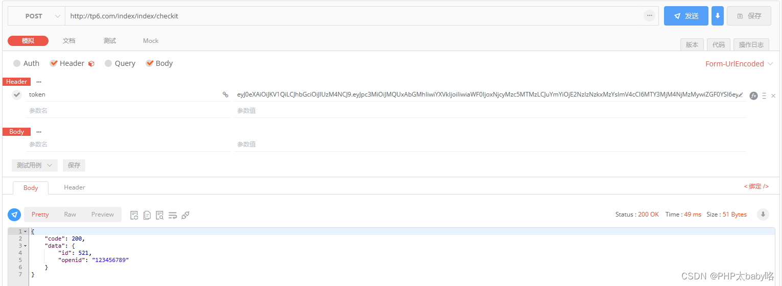 四、在ThinkPHP6中使用JWT+中间件生成验证Token
