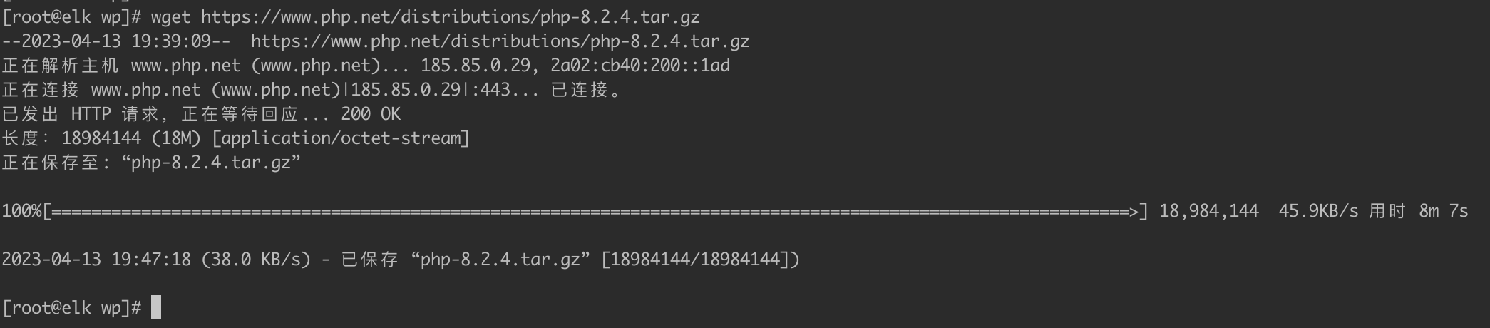 通过 ”wget https://www.php.net/distributions/php-8.2.4.tar.gz“ 我们下载php安装包,文件很大,需要耐心等待。