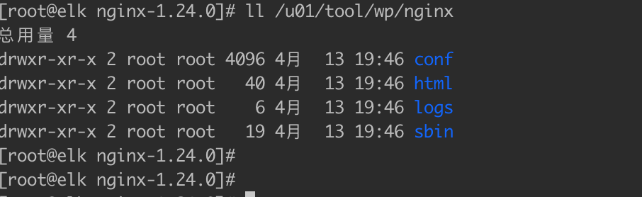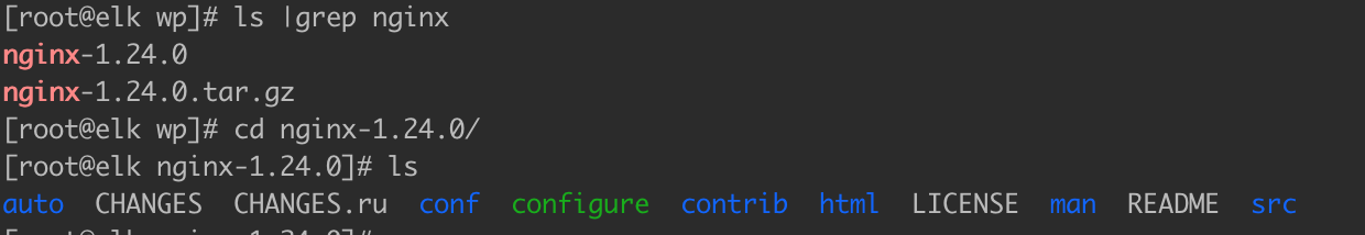 通过”tar -zxvf nginx-1.24.0.tar.gz“ 解压,并且进入解压目录