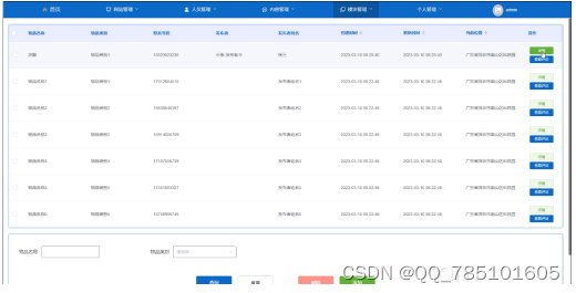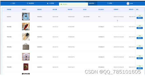 | 测试目的 | 检测招领物品管理时的各种操作的运行情况 | |