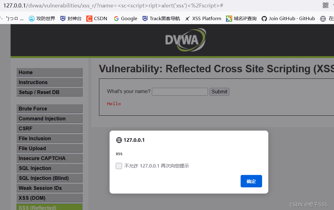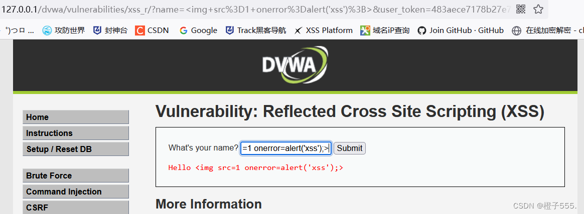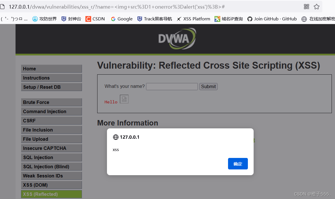 当我们把闭合后的img构造语句执行后,发现出现弹窗,说明存在xss注入漏洞。