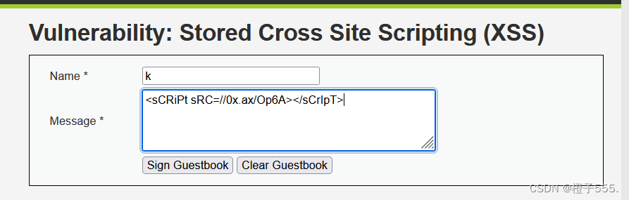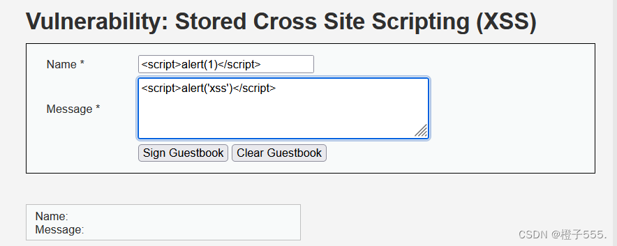 查看源代码,发现将Message所有可能xss攻击的标签都进行了转义或过滤,但对Name仅仅限制了<script>的标签,因此我们依旧可以在Name中使用大写、双写、使用其他标签等方法来进行注入.