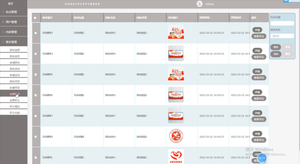 The main functional modules of the college student youth volunteer management system include user management, group information, group members, application groups, group activities, application activities, group projects, application projects, point exchange, volunteer points, point increase and volunteer style. The object-oriented development mode is adopted for software development and hardware erection, which can well meet the needs of practical use, Improve the corresponding software erection and program coding, take MySQL as the main storage unit of background data, and use Java EE framework, Java technology and Ajax technology to code and develop the business system, so as to realize all the functions of the system. This report first analyzes the background, function and significance of the research, which lays a foundation for the rationality of the research work. This paper analyzes the various needs and technical problems of the college student youth volunteer management system, proves the necessity and technical feasibility of the system, then makes a basic introduction to the technical software and design ideas needed to design the system, and finally realizes the college student youth volunteer management system and the deployment and operation of it.