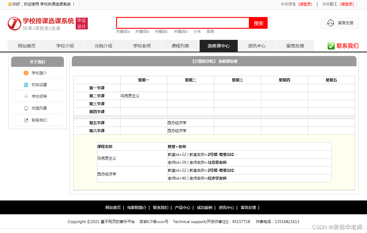 基于PHP学校排课和选课系统