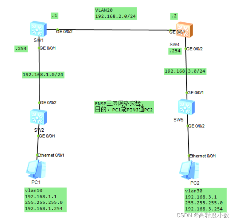 [SW1-Vlanif20]ip address 192.168.2.1 24