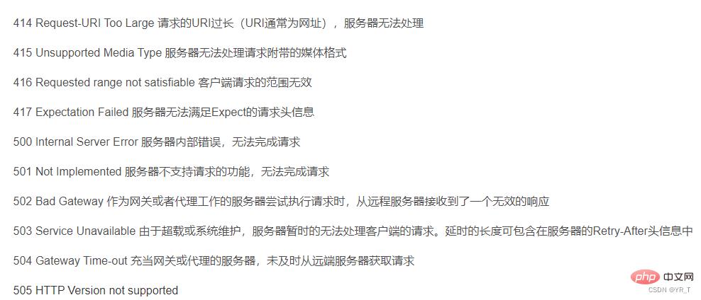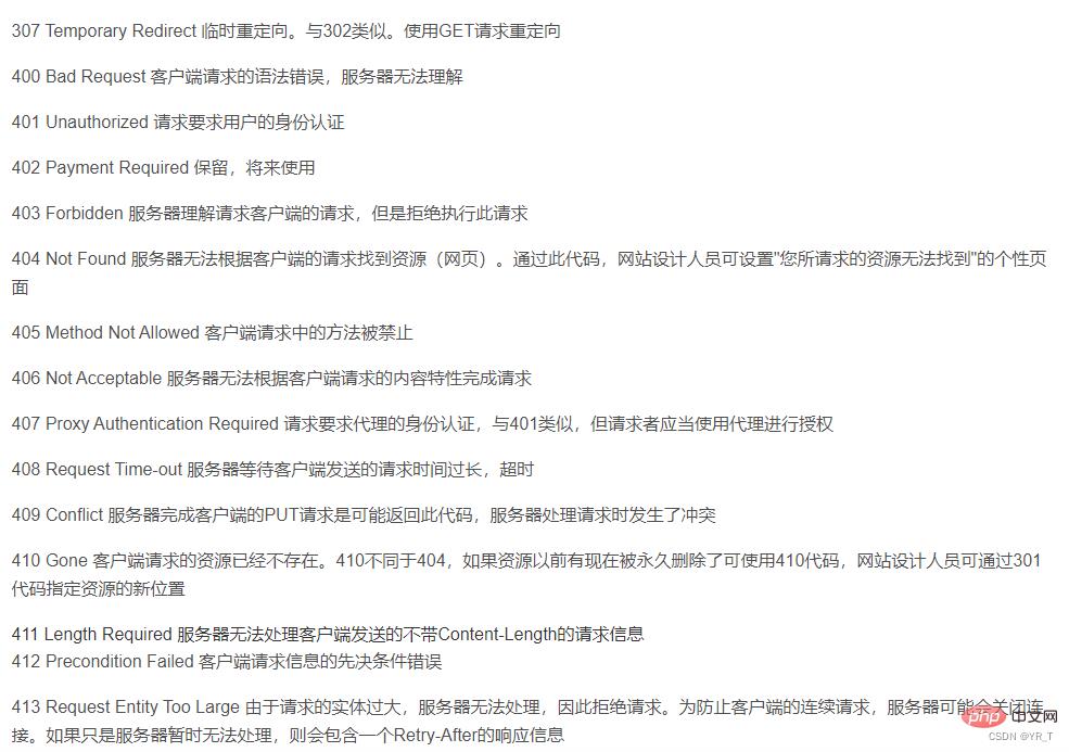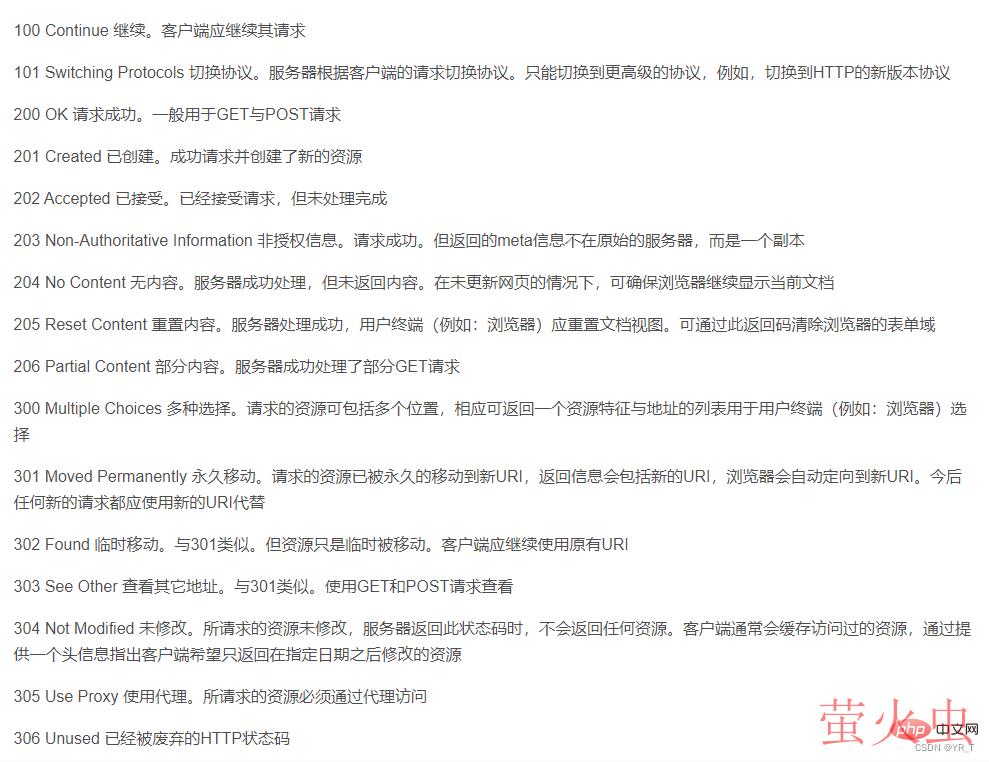 这里状态码有一张表,对应了各个状态码的意思