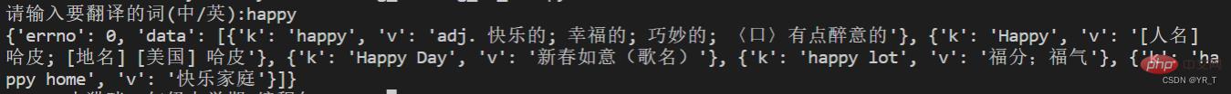 然后通过 post 方法发送请求,再把返回的结果打成一个 dic (字典),但是这个时候我们打印出来结果发现是这样的。