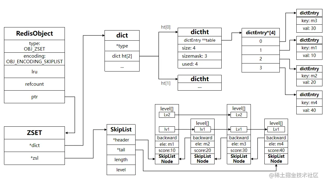 | OBJ_ZSET | ZipList、HT、SkipList |