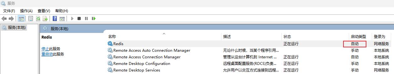 此时已经将redis注册成windows服务了,进入电脑本地服务列表,可以看到redis已经是自启动的了